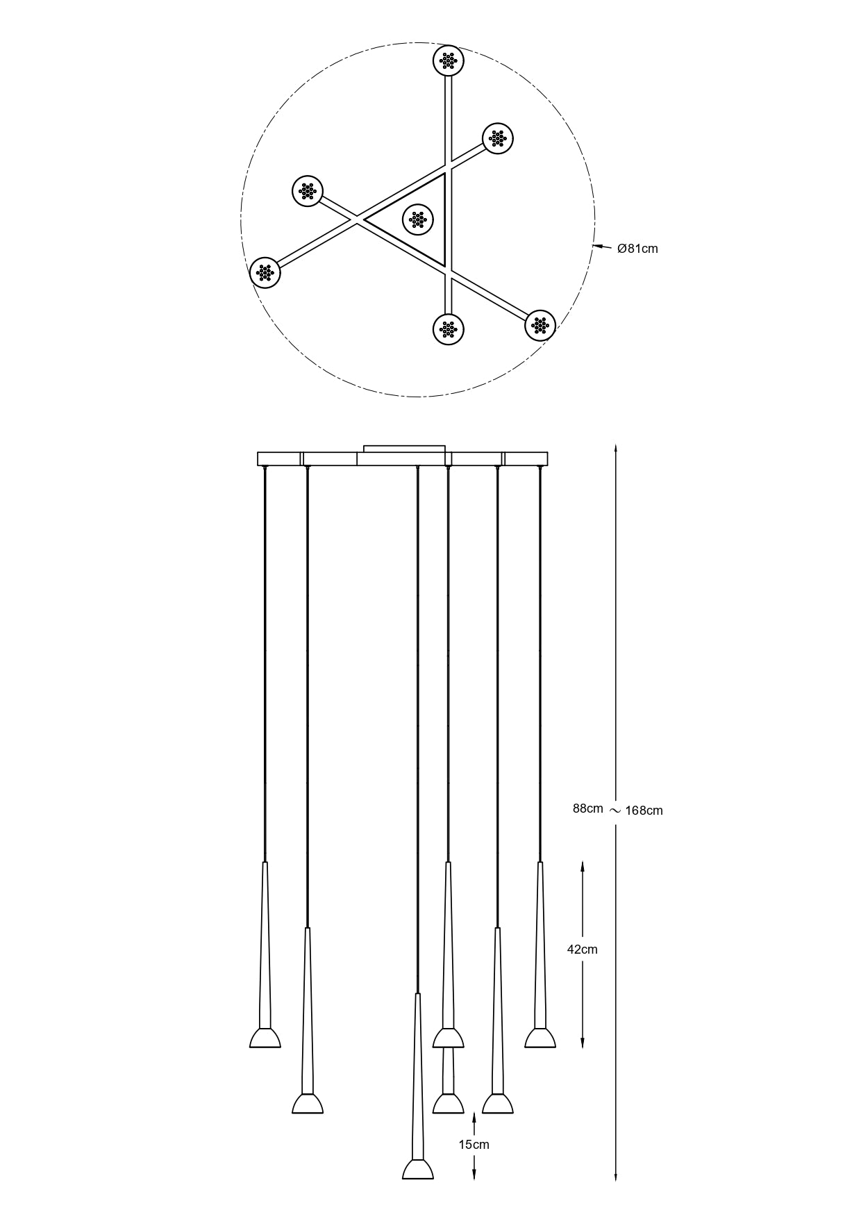 - Abmessungen: Ø 81 cm, Höhe 88-168 cm