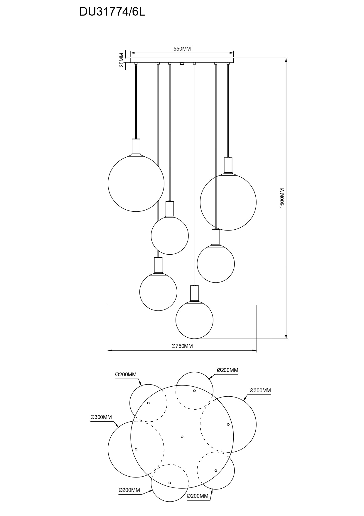 - Leuchtmittel: 6x E27 (25W)