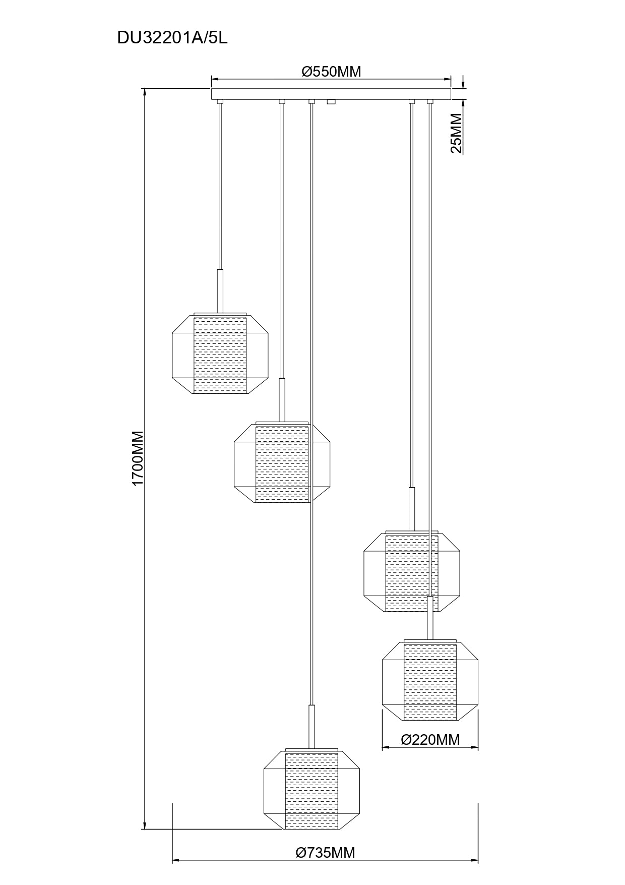 - Leuchtmittel: 5x E27 (25W)